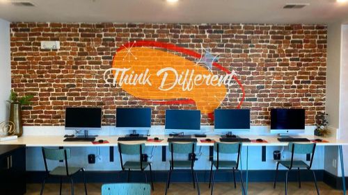 I got to spend the afternoon with Caleb today setting up housing for next school year. The complex he chose has a common area with these computers available for student use. A ratio of 80% PCs to 20% Mac doesn’t exactly invoke the spirit of Apple’s “Think Different” campaign of the late 90s, this is…